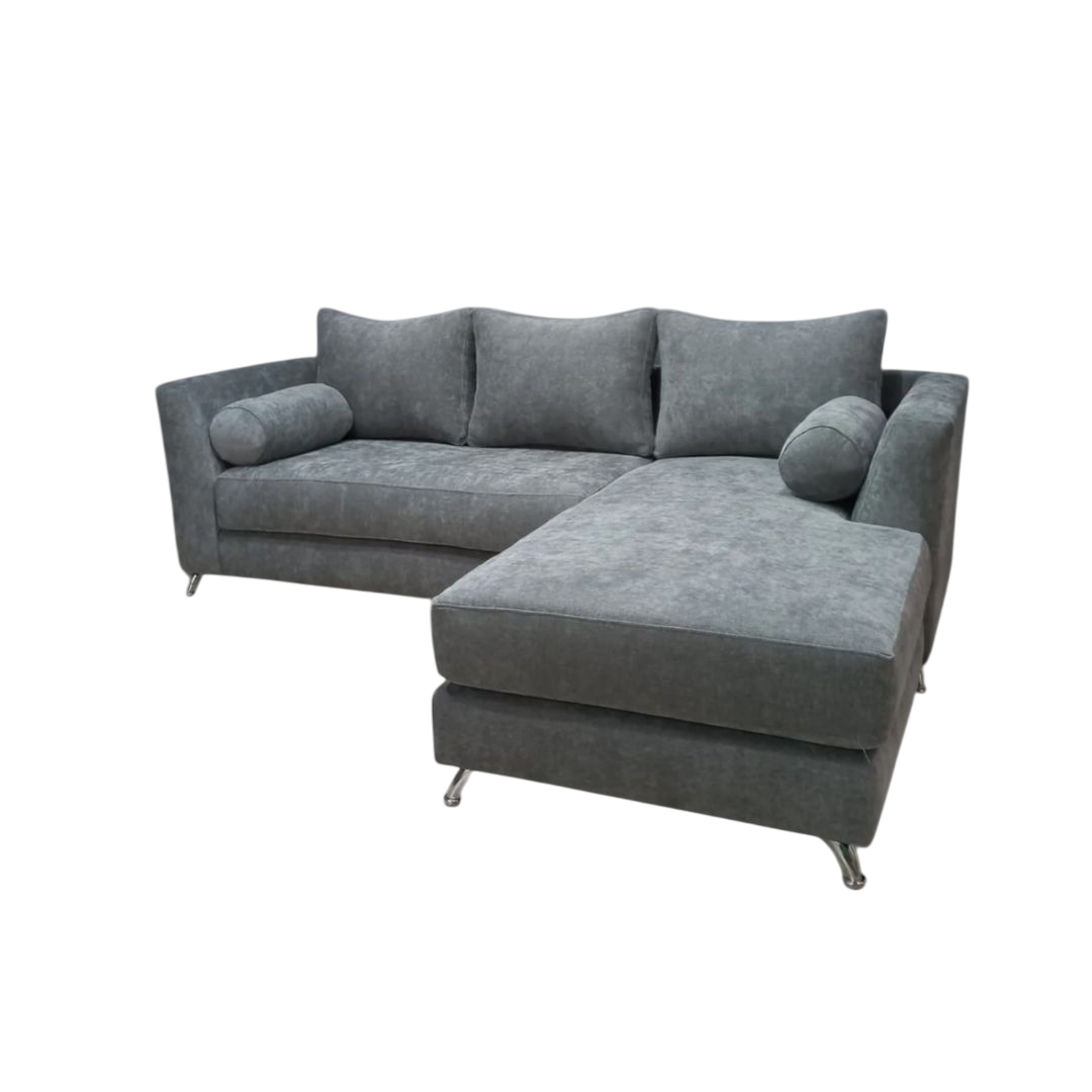 Este sofá se destaca por sus placas de 26 kg de densidad proporcionando un asiento con un confort inigualable. El respaldo esta compuesto por Almohadones con funda y cierre  de vellón siliconado para mayor confort, y patas de aluminio para dar ese toque sofisticado.Al ser reversible se puede mover a izquierda y derecha cuando se desee. La Pana es proceso anti-manchas , que facilita el eficiente limpiado y mantenimiento del mismo.La  Estructura del asiento esta compuesta por madera saligna y mdf de manera entera que le otorga mayor resistencia y durabilidad. Y de regalo te llevas 3 almohadones decorativos de 45×45 y 2  almohadones caramelos.