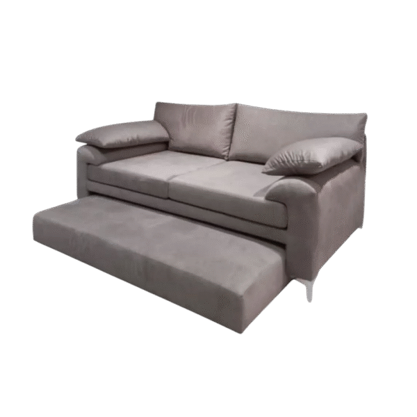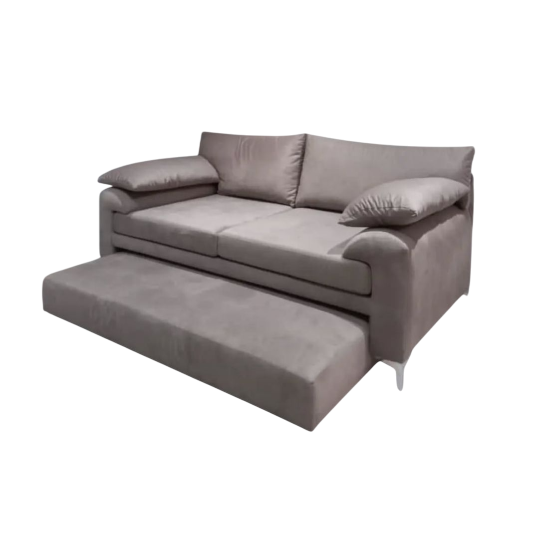 Este sofá se destaca por sus placas de 26 kg de densidad proporcionando un asiento con un confort inigualable. El respaldo esta compuesto por Almohadones con funda y cierre de vellón siliconado para mayor confort, y patas de aluminio para dar ese toque sofisticado. La Pana es proceso anti-manchas , que facilita el eficiente limpiado y mantenimiento del mismo.La Estructura del asiento esta compuesta por madera saligna y mdf de manera entera que le otorga mayor resistencia y durabilidad. El extensible resulta excelente como cama adicional .Y de regalo te llevas 4 almohadones decorativos de 45×45.